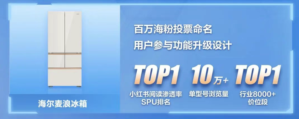 而率先开启“用户共创”模式的则是行业领头羊海尔冰箱。从618数据来看,“用户共创”的海尔麦浪冰箱在行业8K+市场居TOP1,助力海尔冰箱蝉联全网份额第一。